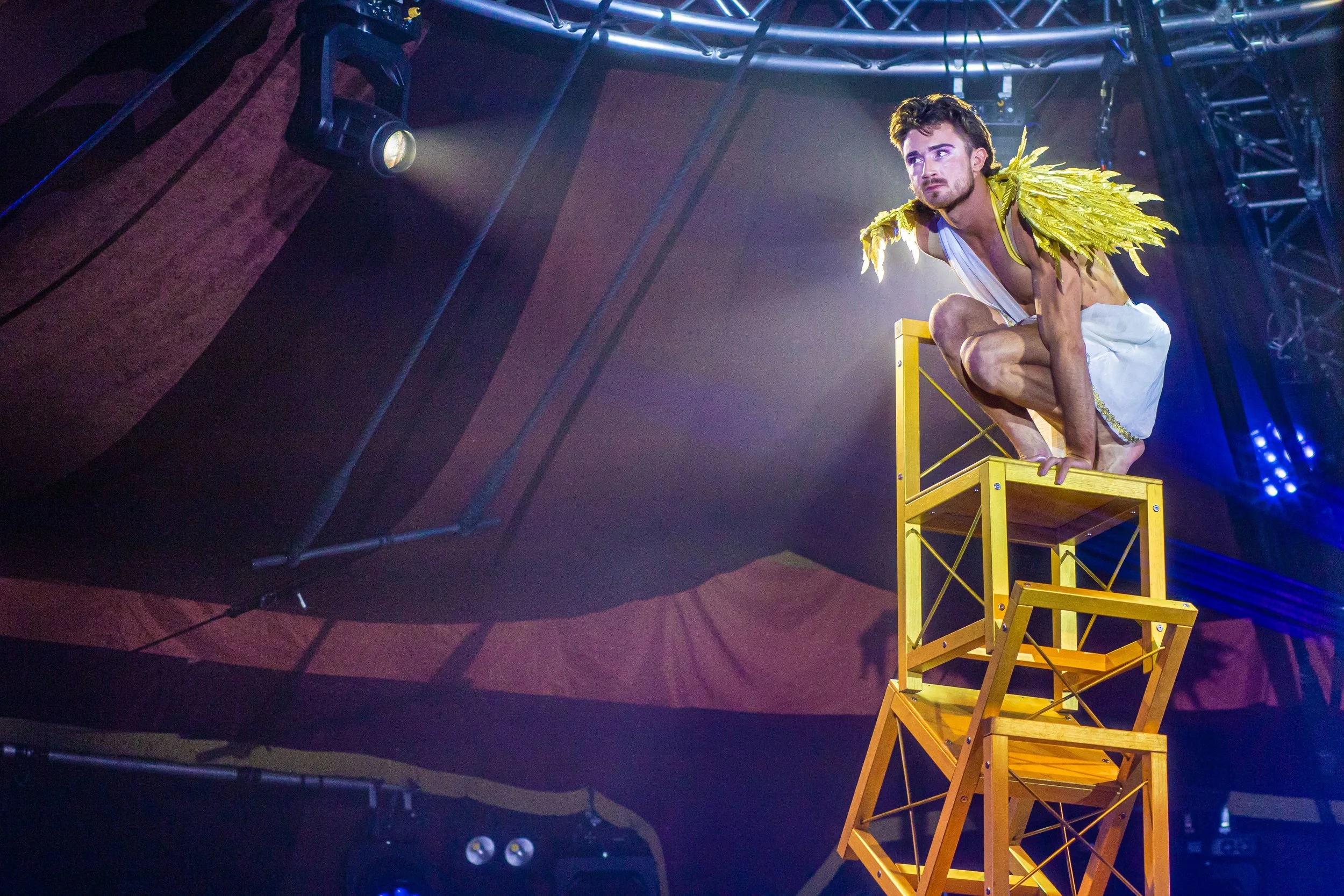 It is certainly a flying visit, but the arrival of Melbourne's First Head Acrobats with their show GODZ is one not to have missed – camp as chloe, and able to perform feats of balance that take the breath away Apollo, Dionysus, Cupid and Hercules have fallen foul of Zeus and are holding a party. What they get up to has to be seen to be believed, but they can climb up a ladder and climb back down the other side with the ladder standing erect, balance on a pile of chairs balanced on one another, do things with a whip to candles held by two of their number that are astonishing, dangle from a trapeze holding on with one hand, and as for what they get up to when three of them pose with only a brass tray to preserve their modesty while the fourth dusts them down with what might be a feather duster the less said the better. It is a no names, no packdrill night so who plays the gods I do not know but one is as good as the other and they are good at reacting with the audience. What the point of it all is anybodys guess but if this is what they can do then let them do it because it is certainly well worth watching – after falling out with Zeaus there is a side trip to Hades just to make what they get up to even more amazing. As well as no names there is no programme so who directed it is a mystery but it hardly matters not knowing. The show is the thing.