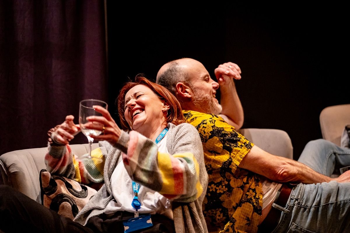 Jab first opened a year ago at the Finborough when I gave this account of a marriage in free fall during the Covid pandemic four stars and praised the acting and the power of the writing as well as the direction of Scott Le Crass. Maybe it seems a little less powerful now – there are other worries facing the world – but it is arguably still the play which summed up how isolation during the pandemic could destroy a relationship. Anne (Kacey Ainsworth) works for the NHS and becomes a vacinator, while Don (Liam Tobin), her husband of some 29 years, stays home. He has run, more or less as a hobby, a shop but now cannot do so and has become more or less a house husband, a role he resents. We meet them in a series of short scenes as things deteriorate and the initially jolly Don turns into an abuser demanding sex and refusing to go for a jab, while she suffers the effects of the menopause and, through her work, knowing what can happens loses patience with him. It happens as night after night they watch television, drink wine and bickering turns into abusive behaviour until, inevitably, he ends up in hospital and she is alone talking to him on the telephone. He does, of course, die – which in a way is her salvation. Arguably the play works less well in the larger space of Park 90 – the smaller Finborough confronted one far more closely with the couple, whereas in Park 90 one becomes part of an audience instead of being there in that claustrophobic living room. The set consists of four chairs and the pair move from one to the other, sometimes seated side by side, sometime apart – the initial closeness, because it was a good enough marriage, starts to break down and the way the chairs are placed shows what has happened. A year ago Jab was very moving, now perhaps less so – Covid is yesterday, come the next pandemic maybe people will have learned what to do and unbelievers like Don will be rarer, and there are other worries to occupy minds. Lessons have been learned, the Covid inquiry will report but it remains a powerfully performed and disturbing play.